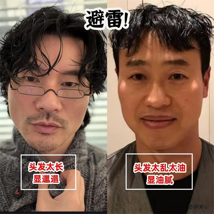 说到打扮,发型也不能含糊,毕竟换发型等于换头,要是头发没打理好,再高的颜值也没用,就像这些邋遢的卷发、油头造型,简直就是中年男人的颜值杀手,会显得整个人变得超级邋遢。