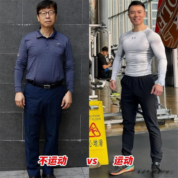除了面部状态的差距,不运动对身材的影响更是超级大,年纪大了代谢下降,肌肉也会逐渐流失,要是不运动,咱们身上的脂肪率越来越高,肌肉变松弛,身材就会因此走样,导致整个人看起来精气神都变差了。